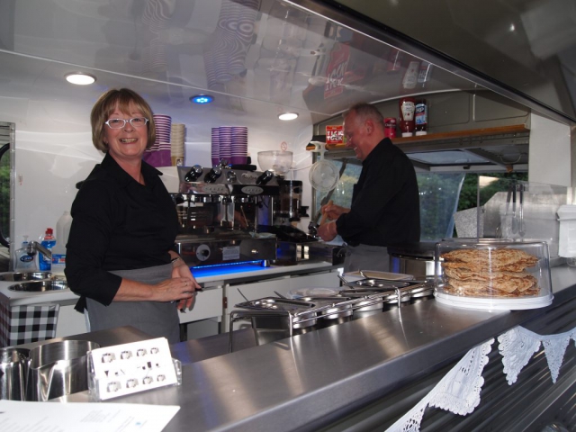 We regularly serve hot drinks, a small selection of alcohol , crepes, soft drinks, biscuits, and cakes. We are very flexible, and usually, our offerings are made in house or very local.